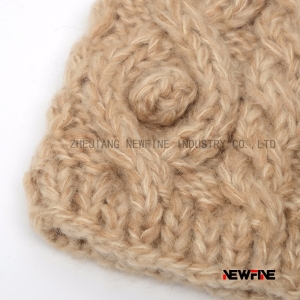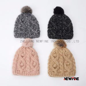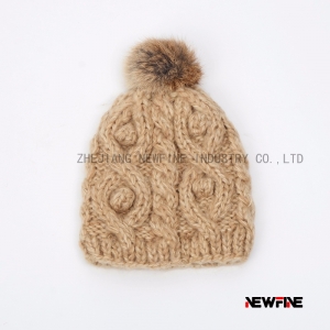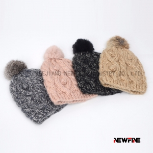 粗針織真兔毛毛球女士舒適可愛帽子